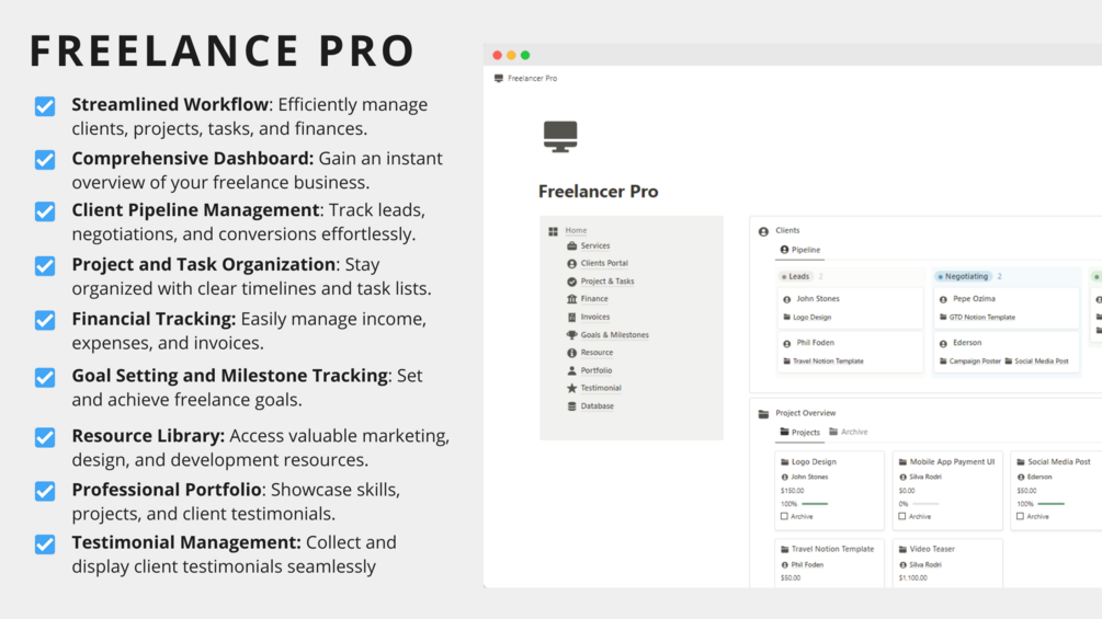 โ You're a Freelancer Looking to Level Up: Whether you're a seasoned pro or just starting out, Freelance Pro is the ultimate toolkit to elevate your business and achieve success.