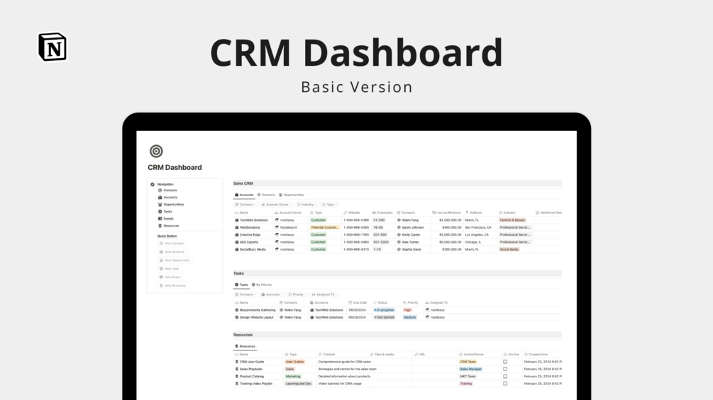 Introducing our CRM Dashboard Notion Template – the ultimate solution to streamline your business operations and skyrocket your productivity!